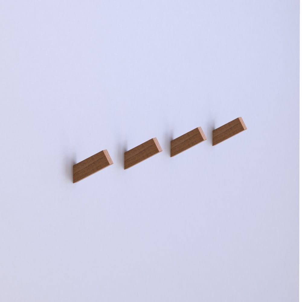 The ANGY wooden wall hook by BLEG combines geometric simplicity with practical functionality. Its square-shaped base supports an angled hook, creating a sleek and modern design that complements any interior while providing reliable support for hanging items.