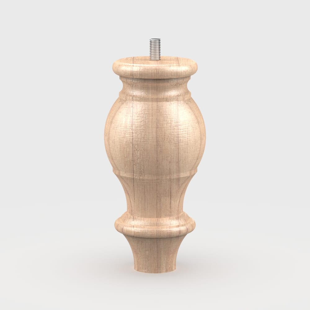 ANTİK is a beautifully turned wooden leg crafted from durable beech wood. Its intricate design is available in raw, stained (walnut, oak, wenge), or lacquered (black, white, etc.) finishes. Natural wood grain may cause slight color variations, enhancing each piece’s unique charm. With customizable sizes, wood types, and installation options like M6, M8, or M10 hanger bolts, ANTİK is an ideal choice for both small and large-scale projects.