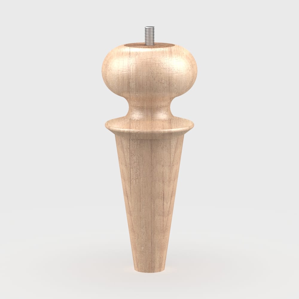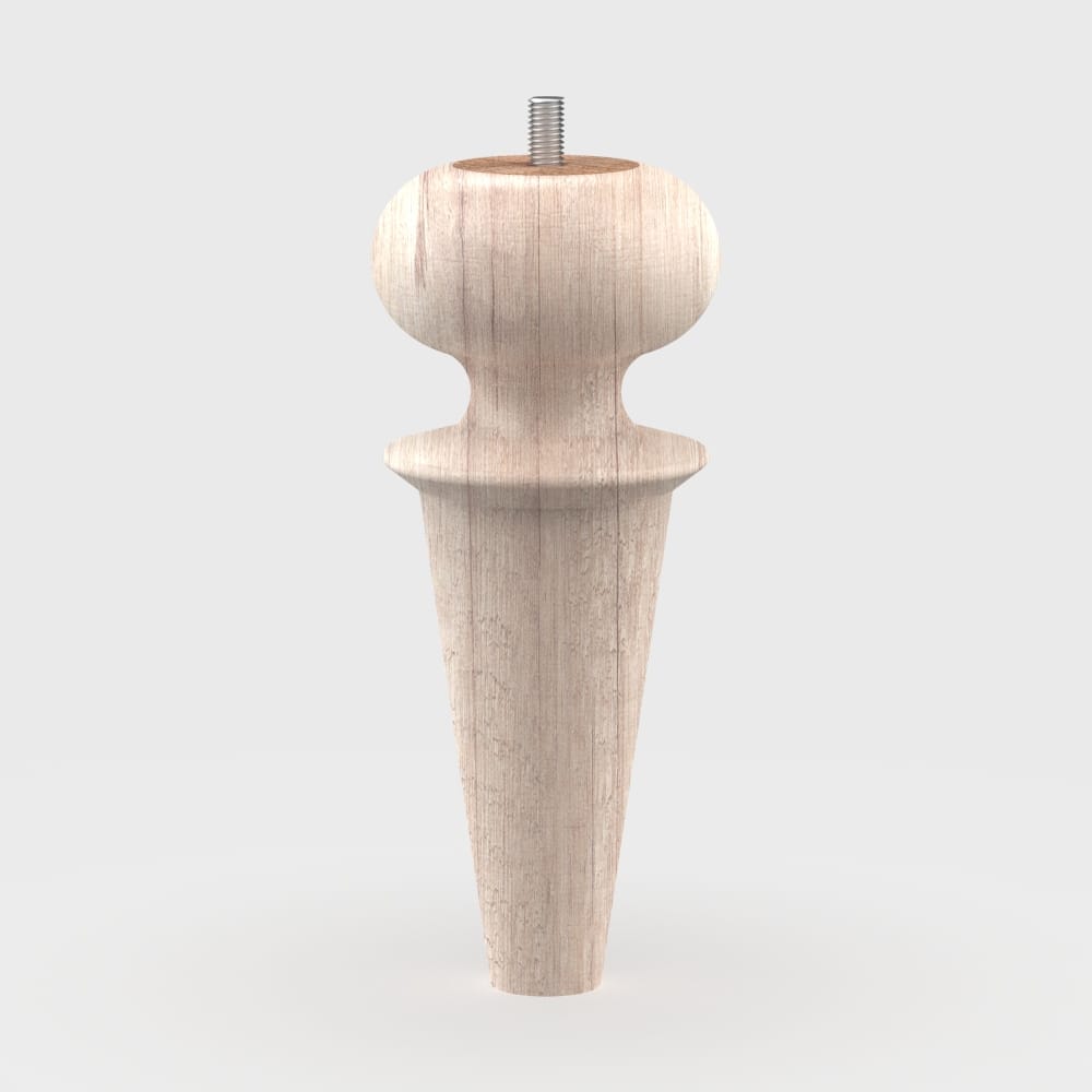 The EKRU leg features a sophisticated design that blends the elegant curves of a bun shape with the sleek lines of a tapered profile. Its turned design, crafted using precision lathe work, makes it a striking addition to a variety of furniture styles. Perfect for achieving a harmonious look, the EKRU leg is ideal for furniture sets requiring legs of various sizes.